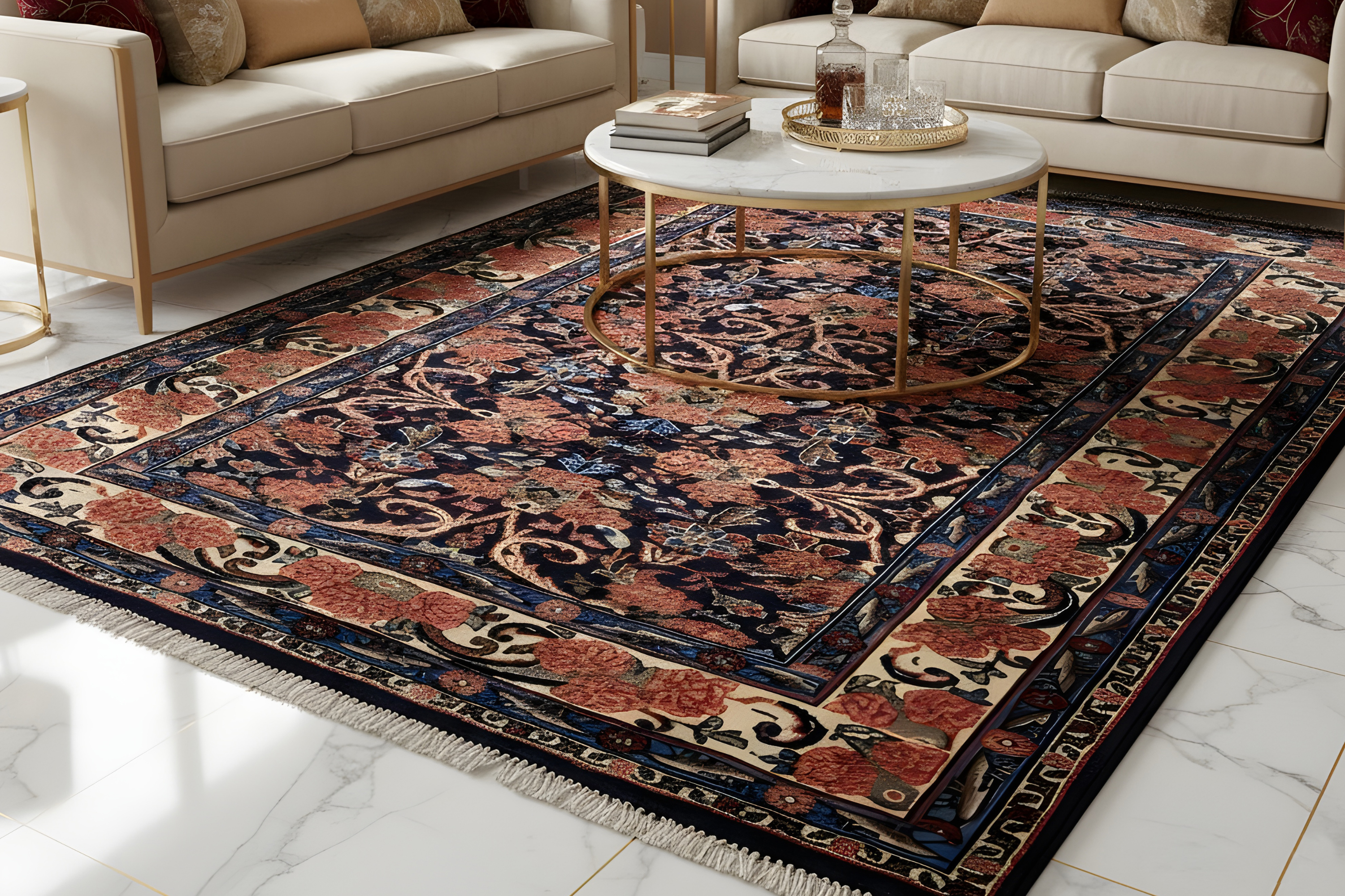 イシャファン絨毯は、ペルシアの歴史的都市イシャファンに由来し、ペルシアの手工芸の頂点を体現しています。これらの絨毯は複雑な花柄のモチーフと洗練されたカラーパレットが特徴で、都市の芸術的遺産を反映しています。イシャファン絨毯は単なる床材ではなく、優雅さと文化的豊かさで家を飾る時代を超えた芸術作品です。