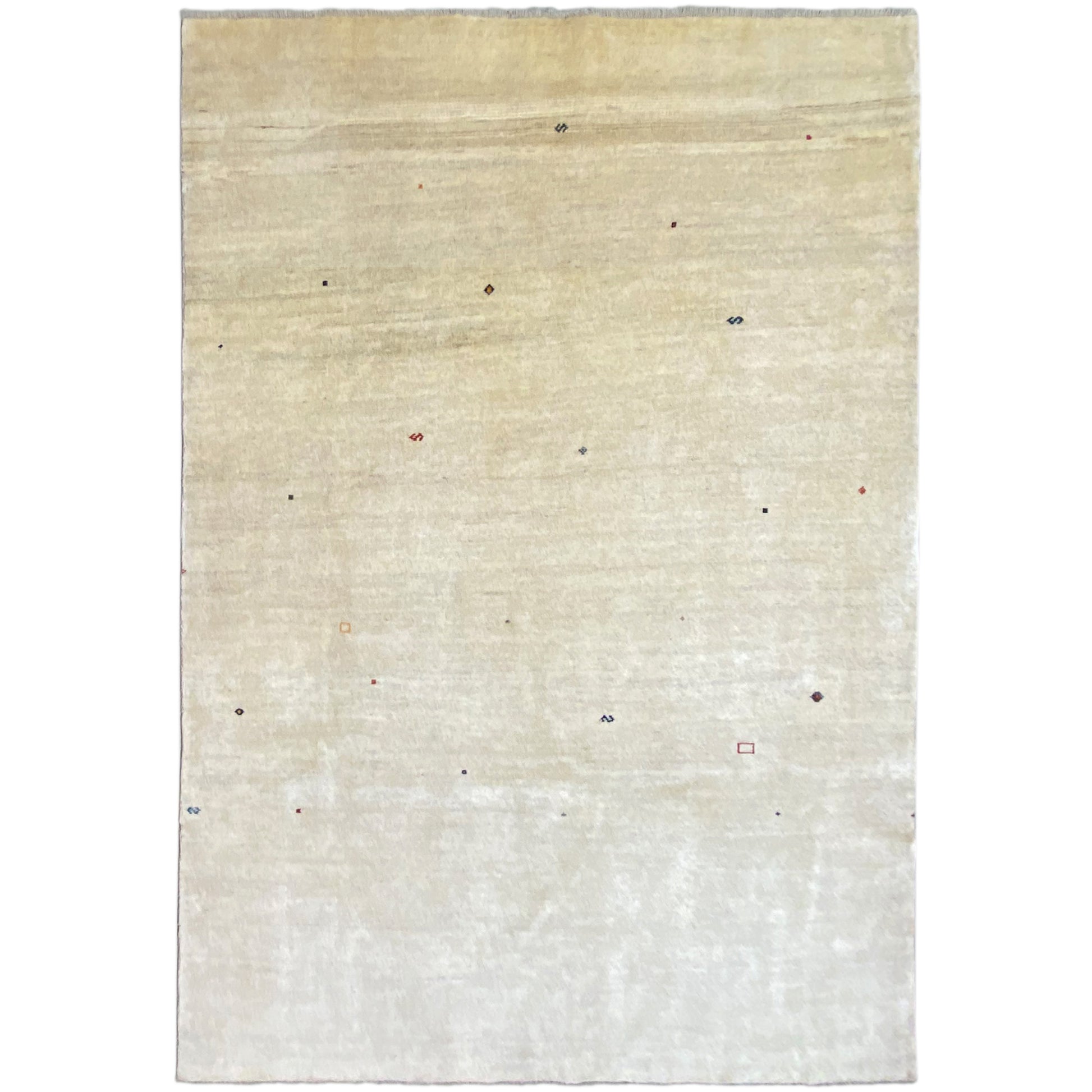 この控えめで手織りのガベ絨毯は、手紡ぎで植物染料を用いた羊毛から作られており、落ち着いたベージュの地色にさりげなく散りばめられた色の点が特徴です。284×197cmのゆったりとしたサイズで、明るく開放的な雰囲気を保ちたい空間に最適で、ミニマリスト、スカンジナビア、モダンなインテリアスタイルに自然に溶け込みます。シンプルながらも興味深いパターンが絨毯に控えめなエレガンスを与え、天然の羊毛が心地よい手触りと耐久性をもたらします。