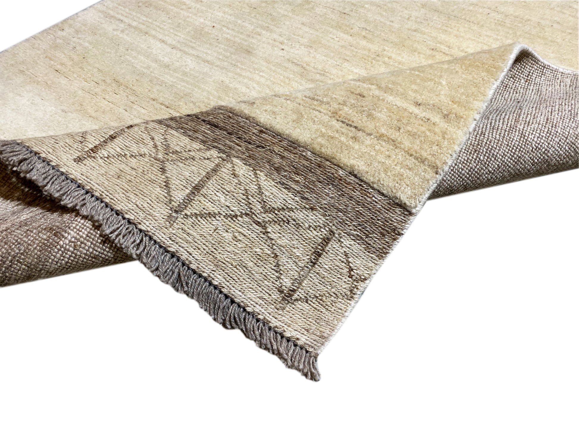 この手織りのケリム・ガベ絨毯は、100%手紡ぎの羊毛で作られており、エレガントなベージュのベースカラーに際立つブラウンのストライプと繊細な民族的な縁取りが特徴です。サイズは177×113cmで、小さめのリビングスペースや廊下、または寝室のスタイリッシュなアクセントとして最適です。この絨毯は、モダン、スカンジナビアン、ボヘミアン風のインテリアスタイルに完璧に調和し、控えめなトライバル要素を含むクリアなストライプ模様が調和のとれた個性的な見た目を作り出します。高品質な仕上げにより、耐久性、快適さ、そして足元に心地よい柔らかさを提供します。