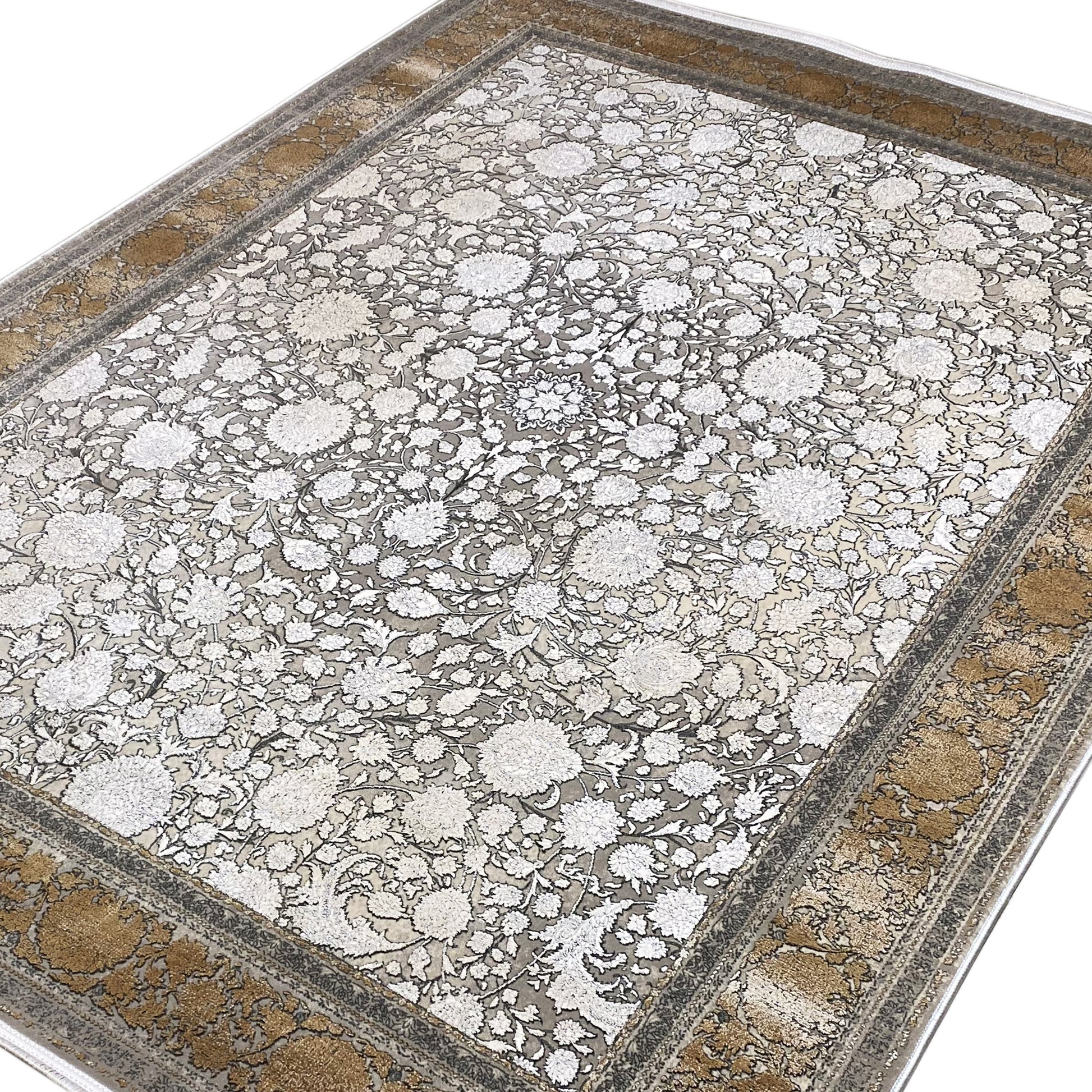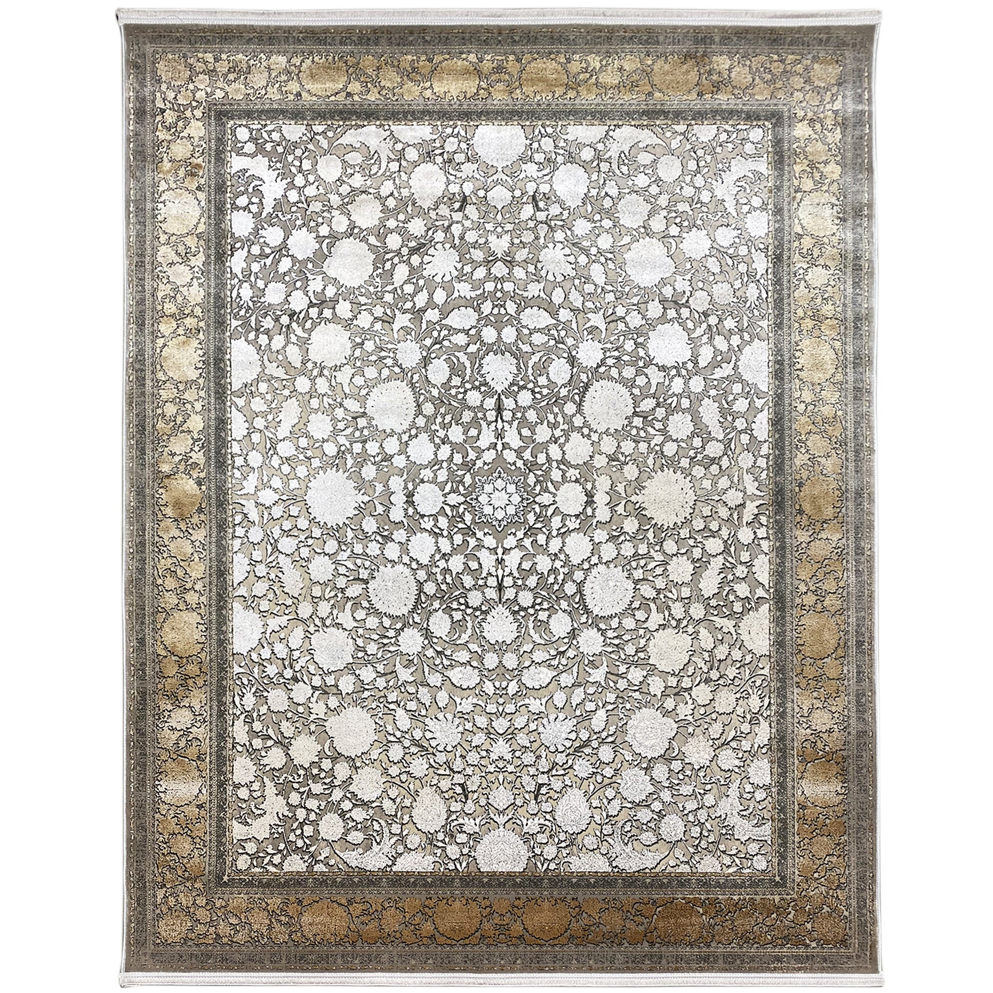 この美しいクラシックなカーペットで、お住まいに時代を超えたエレガンスのひとときを演出しましょう。輝くシルバーとゴールドのトーンで描かれた息をのむような連続した花柄が、贅沢さと奥行きを感じさせます。100%熱処理アクリル製で、この柔らかく耐久性のあるカーペットは、頻繁に使用されるエリアに最適で、洗練されたスタイルと現代的な耐久性を兼ね備えています。170x240cmのゆったりとしたサイズは、リビングルーム、寝室、またはダイニングルームに洗練されたアクセントを加えるのに理想的です。"}