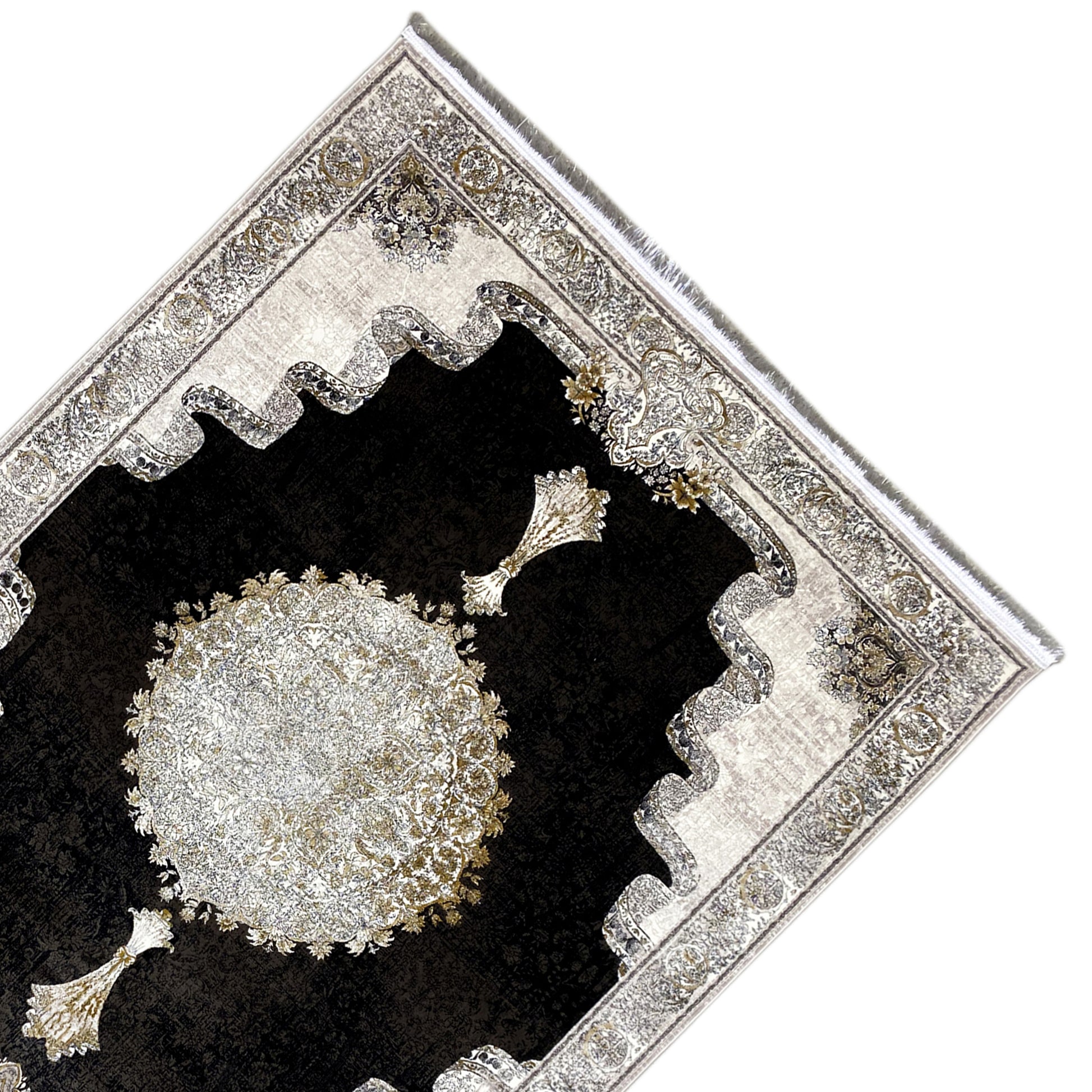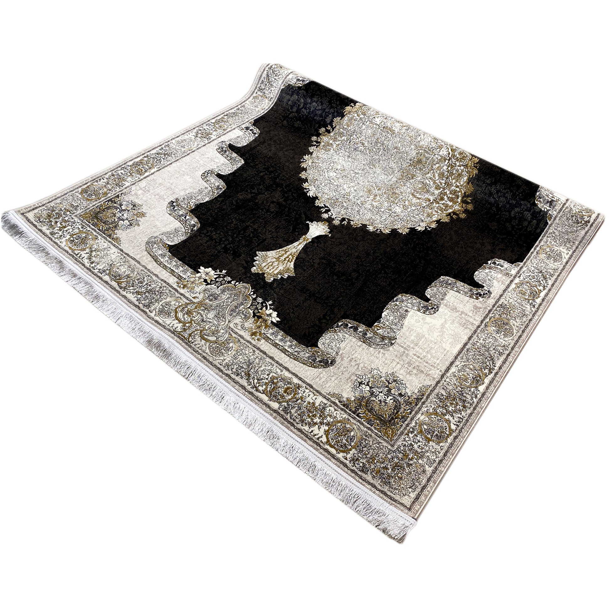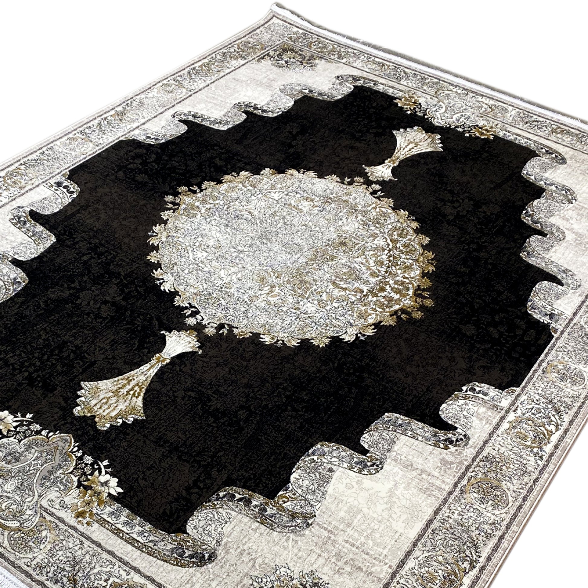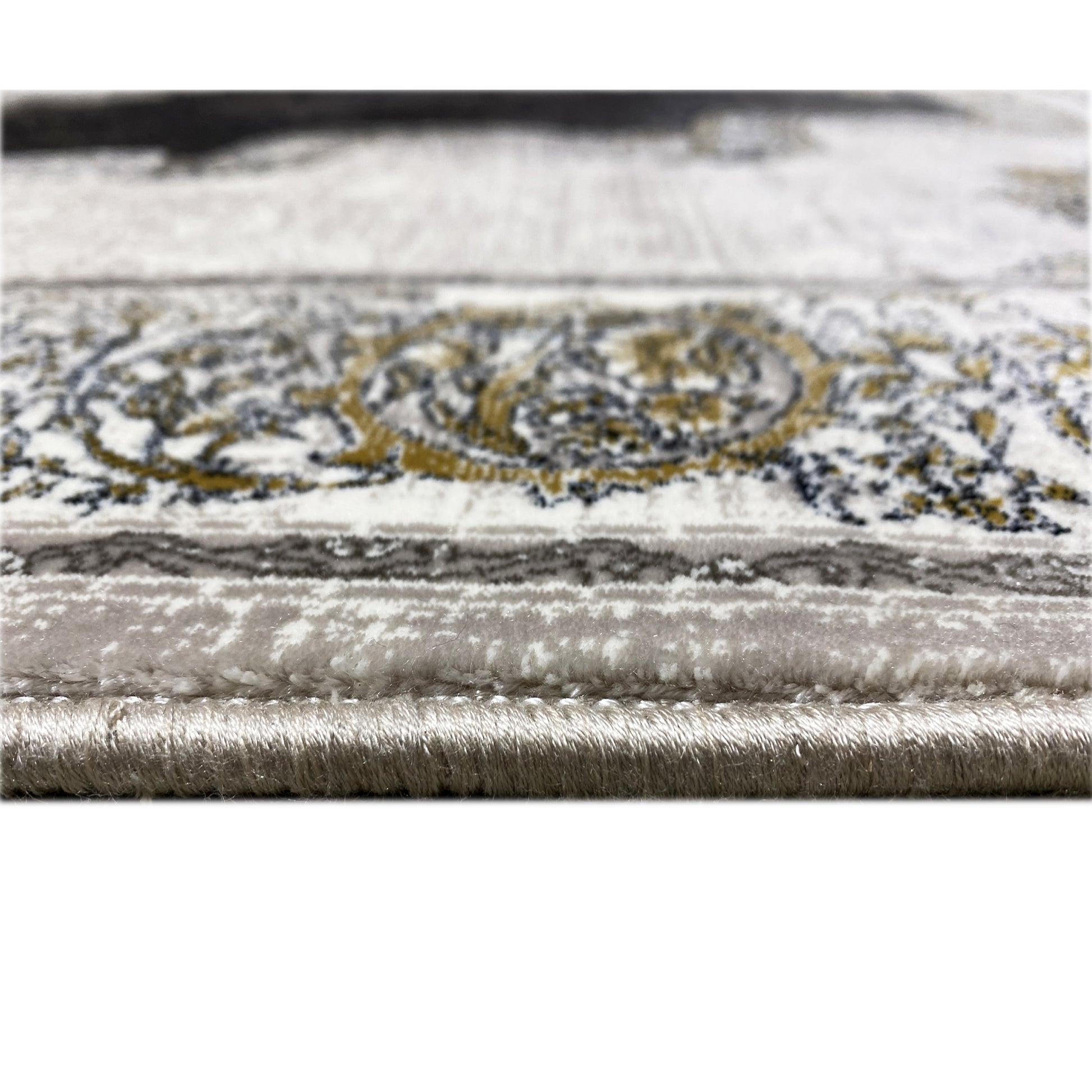 この美しいクラシックなカーペットで、ご自宅にドラマチックなエレガンスのひとときを演出しましょう。スモークグレーの印象的なダークな中央部分は、明るいクリーム色の縁取りと中央の細部までこだわったメダリオンと見事なコントラストを成しています。独特の縁取り模様がさらに贅沢なアクセントを加えています。100%耐熱加工アクリル製で、この柔らかく耐久性のあるカーペットは、豪華なスタイルと現代的な耐久性を兼ね備え、頻繁に使用されるエリアに最適です。170x240cmのゆったりとしたサイズは、リビングルームや寝室にエレガントなアクセントを加えるのに理想的です。"}