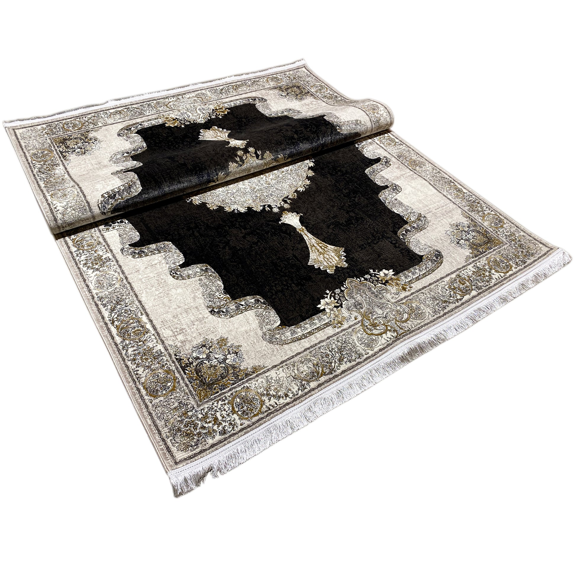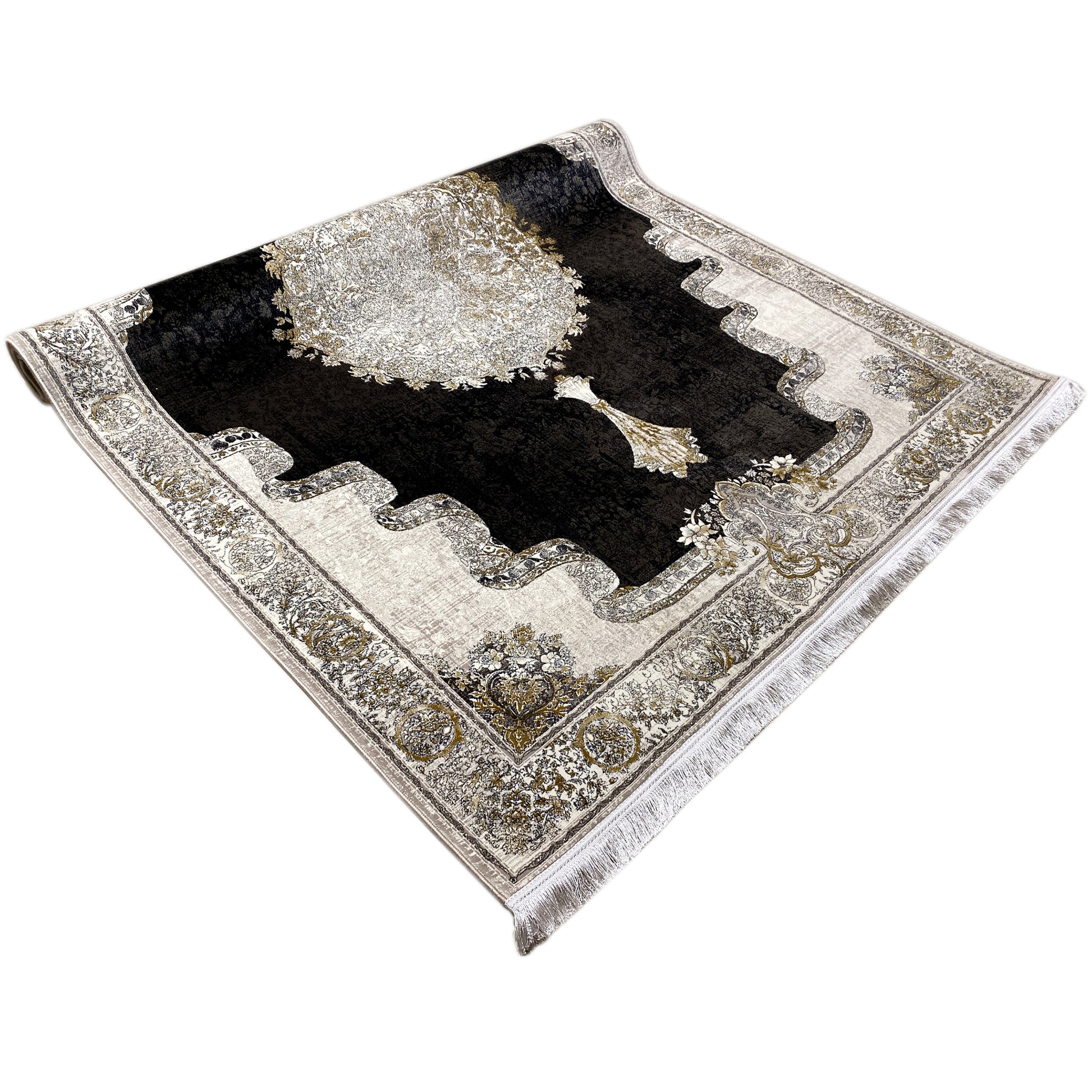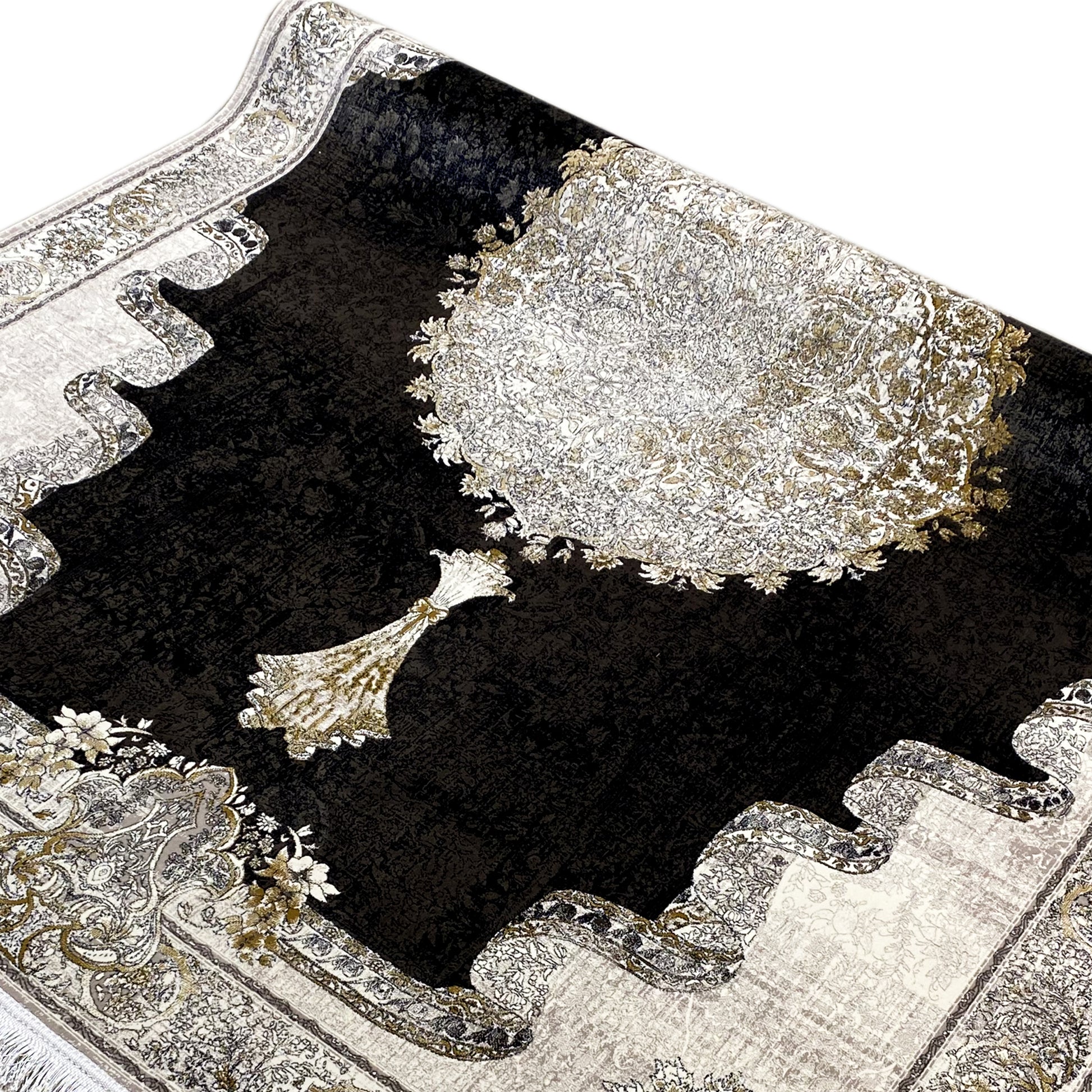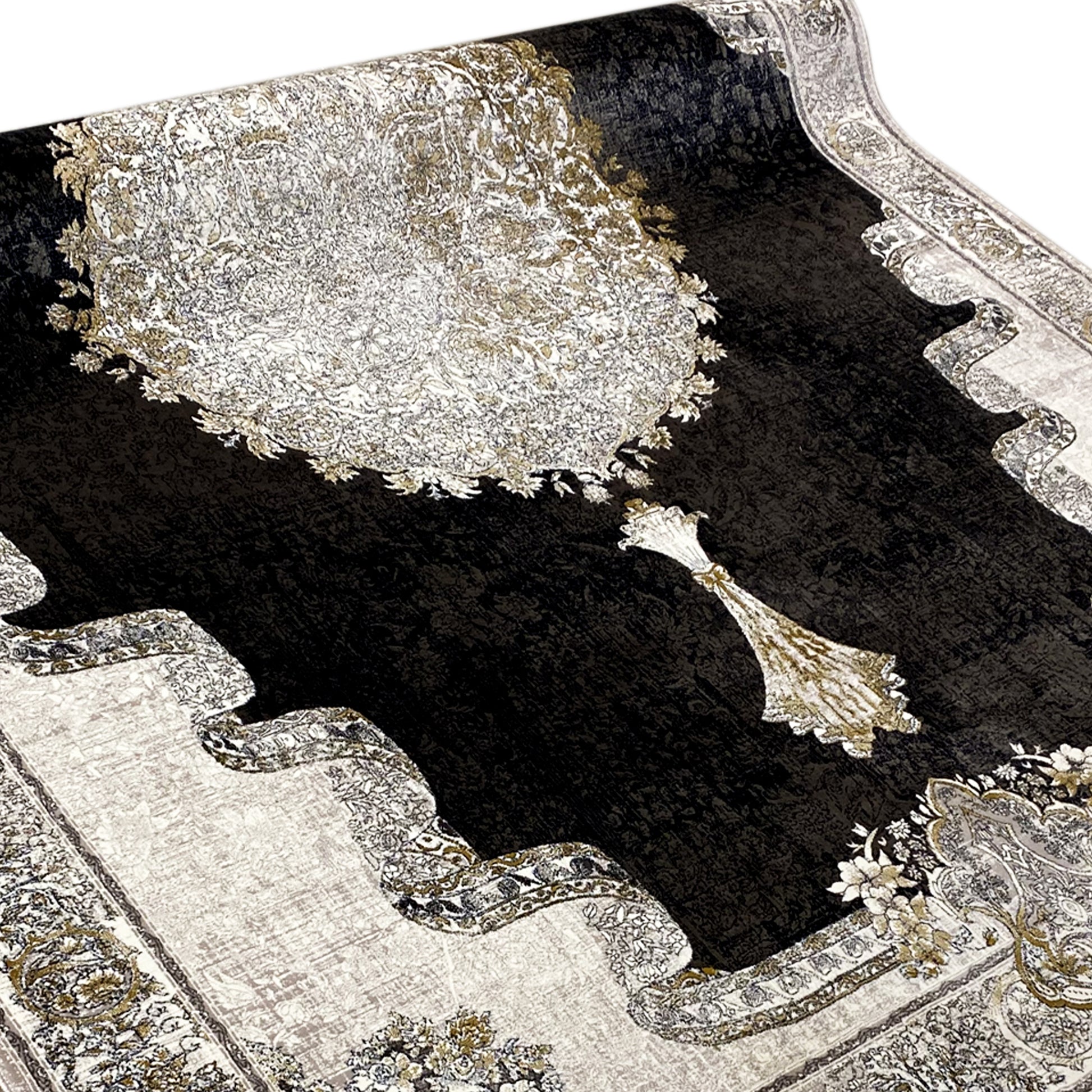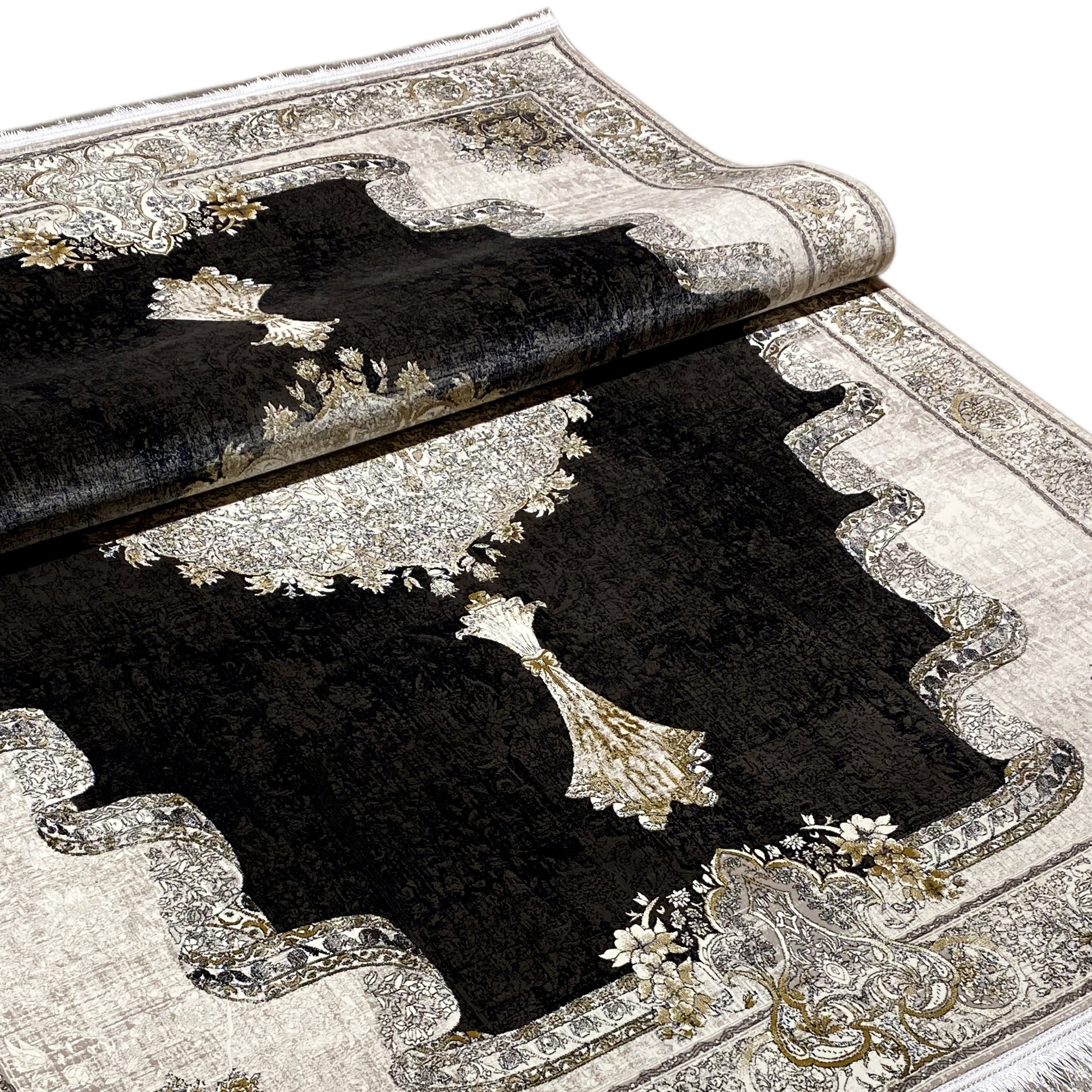 この美しいクラシックなカーペットで、ご自宅にドラマチックなエレガンスのひとときを演出しましょう。スモークグレーの印象的なダークな中央部分は、明るいクリーム色の縁取りと中央の細部までこだわったメダリオンと見事なコントラストを成しています。独特の縁取り模様がさらに贅沢なアクセントを加えています。100%耐熱加工アクリル製で、この柔らかく耐久性のあるカーペットは、豪華なスタイルと現代的な耐久性を兼ね備え、頻繁に使用されるエリアに最適です。170x240cmのゆったりとしたサイズは、リビングルームや寝室にエレガントなアクセントを加えるのに理想的です。"}