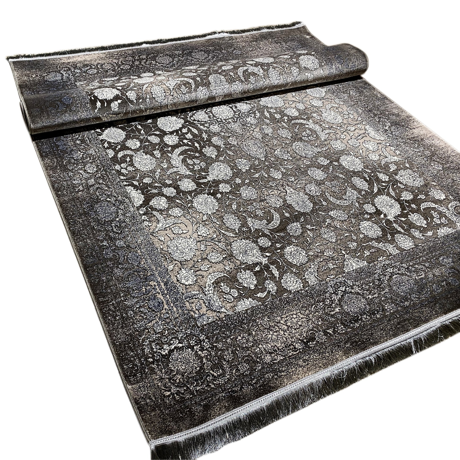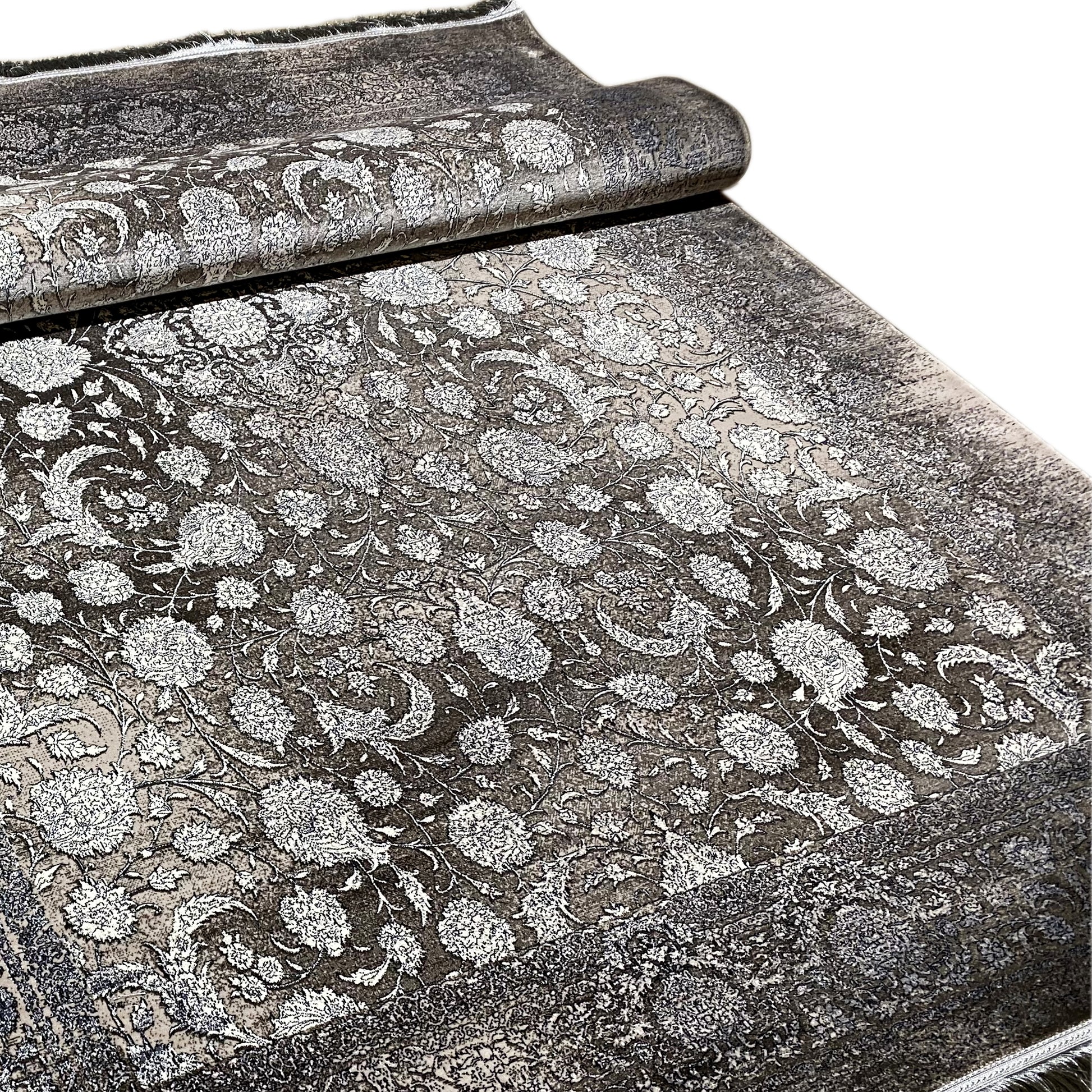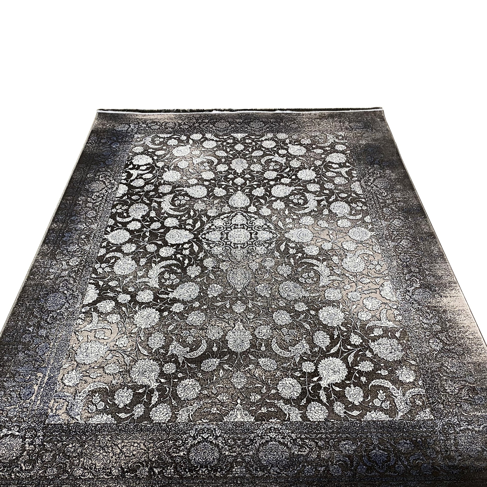 この美しいクラシックなカーペットで、ご自宅に豪華で時代を超えた雰囲気を演出しましょう。明るいベージュトーンの見事な連続花柄が、ダークなスモークブルーの背景からエレガントに際立ち、洗練された色あせたヴィンテージ風のルックを作り出します。100%熱処理アクリル製で、この柔らかく耐久性のあるカーペットは、通行量の多いエリアに最適です。170x240cmのゆったりとしたサイズは、リビングルームやダイニングルームにスタイリッシュなアクセントを加えるのにぴったりです。