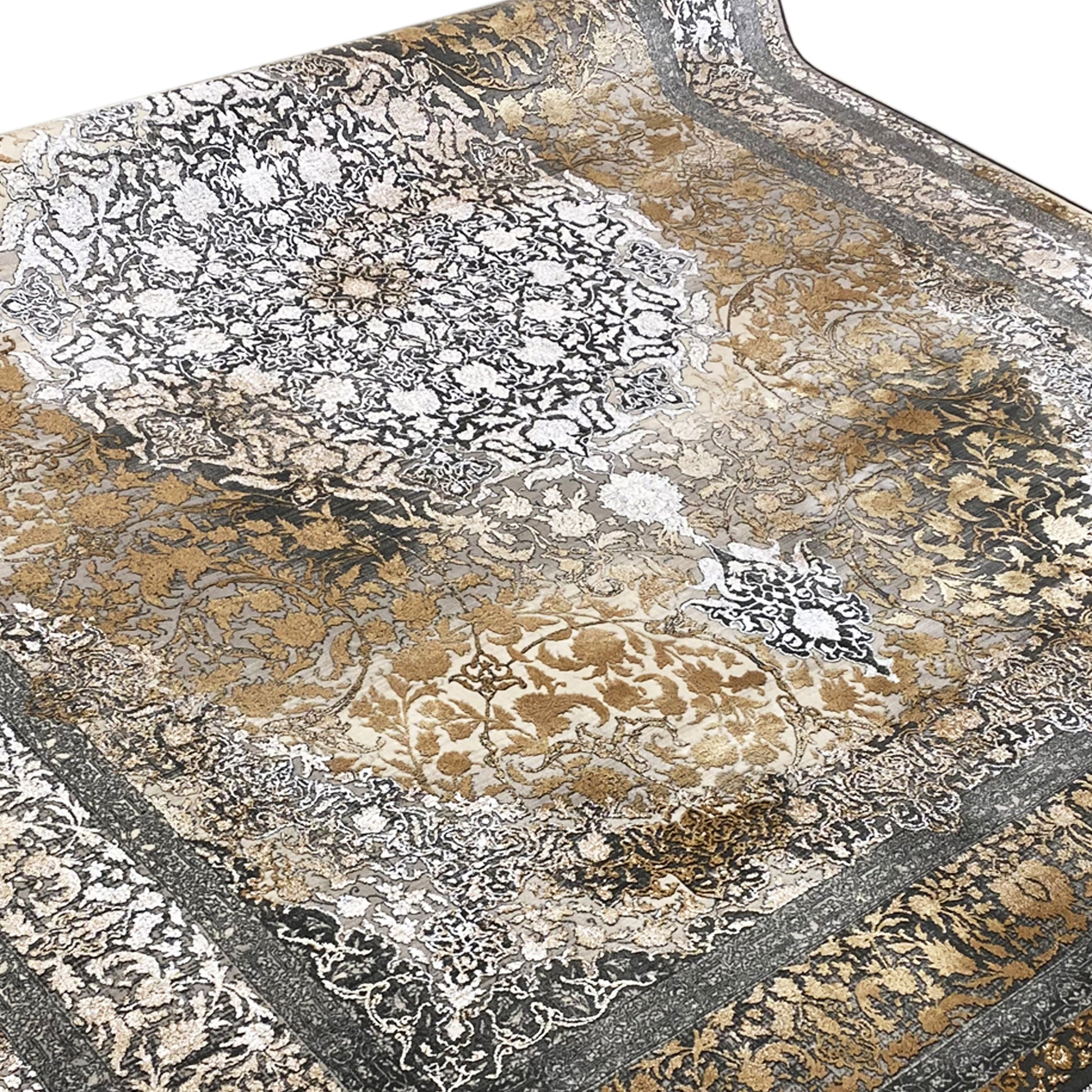 この美しいモダンクラシックラグで、お部屋にヴィンテージエレガンスの風合いを加えましょう。芸術的な中央のメダリオンは、控えめなグラデーションとユーズド感のある驚くほど美しいスモークゴールドブラウンの背景から際立っています。100%熱処理アクリル製で、この柔らかく耐久性のあるラグは、頻繁に使用されるエリアに最適で、贅沢なスタイルと現代的な耐久性を兼ね備えています。170x240cmのゆったりとしたサイズは、リビングルームやベッドルームに洗練されたアクセントを加えるのに理想的です。"}