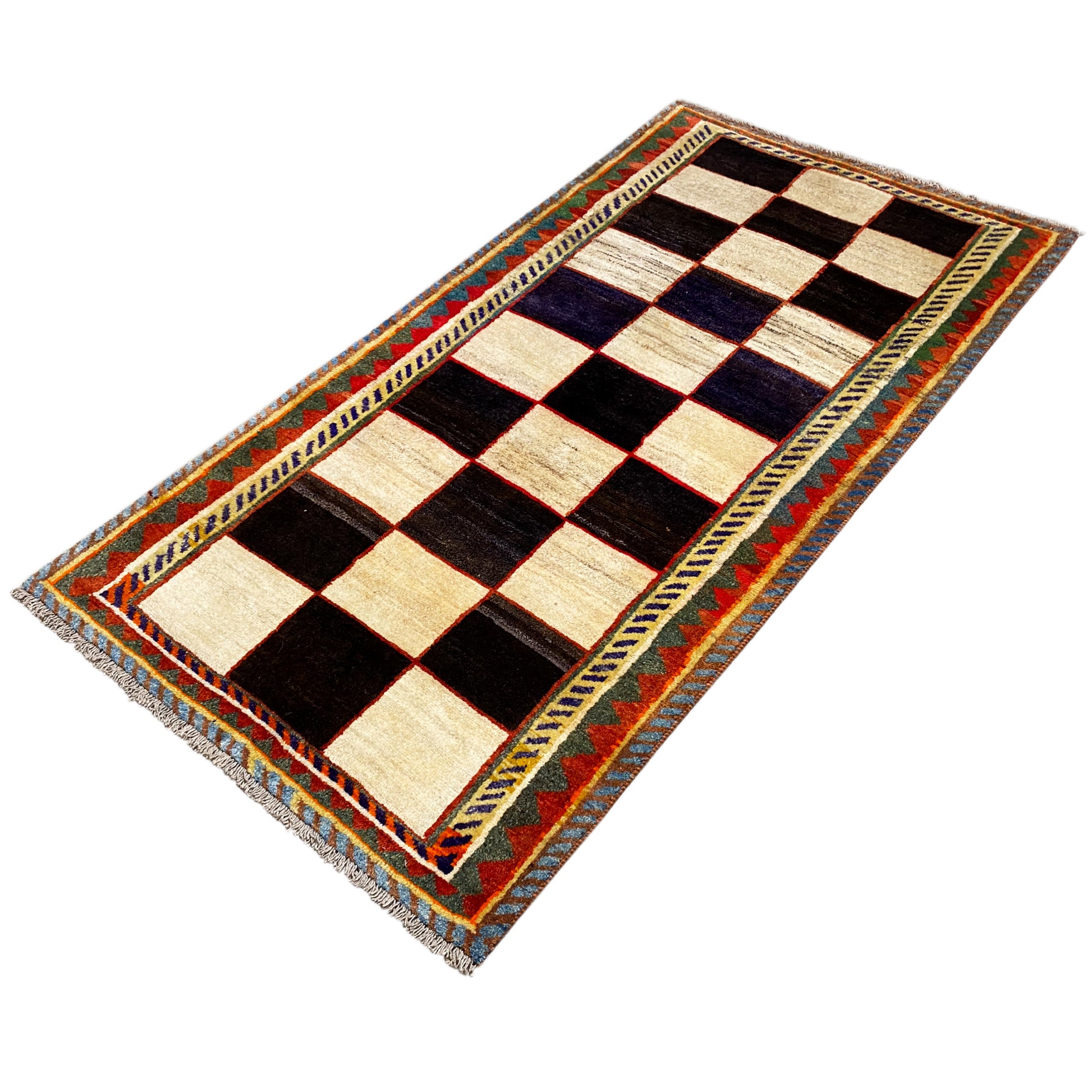 この表現力豊かな手織りのガベランナーは、手紡ぎで植物染めされた羊毛を使用し、クラシックな白黒のチェスボード柄が特徴で、生き生きとした多色の縁取りに囲まれています。サイズは194x100cmで、廊下や玄関、細長い部屋にダイナミックでありながら時代を超えた美しさをもたらす印象的な一品です。伝統的な職人技とグラフィックなパターンの組み合わせにより、このランナーは現代性と伝統的な魅力を兼ね備えた特別な注目の的となり、魅力的な雰囲気を演出します。