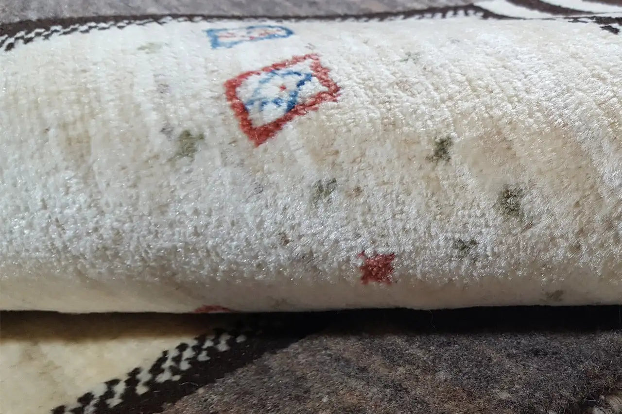 ガベはペルシャ絨毯の現代的なバリエーションです。これらの絨毯の起源はペルシャ南部の遊牧民の部族にあります。ここで提供されているガベも、現在のペルシャのこの地域にある私たちの工房から来ています。すべてのガベは高品質のペルシャ産新毛ウールで作られ、植物染料で染められています。