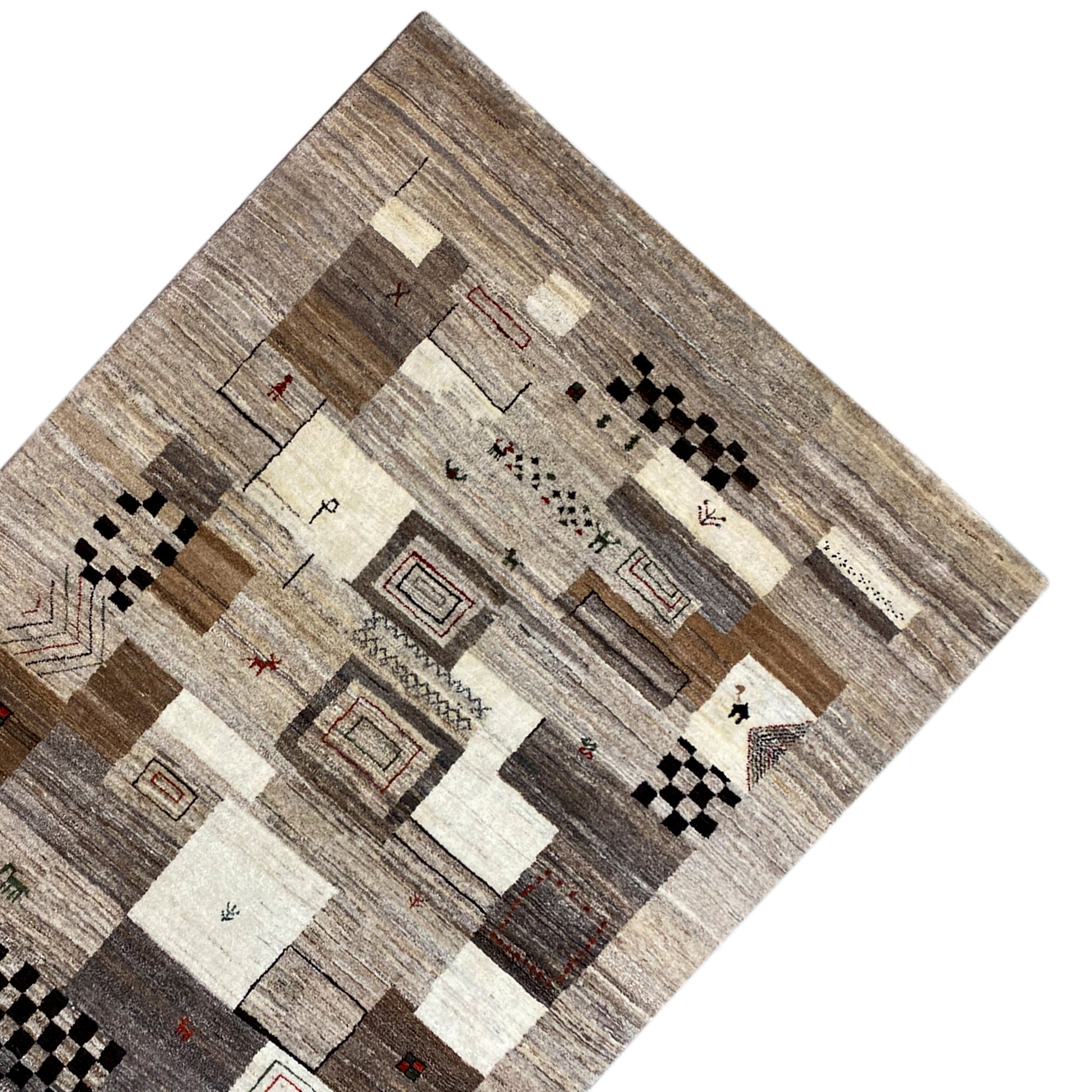 この手織りのガベ絨毯は、手紡ぎで植物染めされた羊毛を使用しており、モダンな装飾スタイルと幾何学模様でどんな家にも自然なエレガンスをもたらします。サイズは242x169cmで、このユニークな絨毯は目を引くだけでなく、耐久性と持続可能性に優れたインテリアのアクセントとして、リビングルームや寝室に最適です。