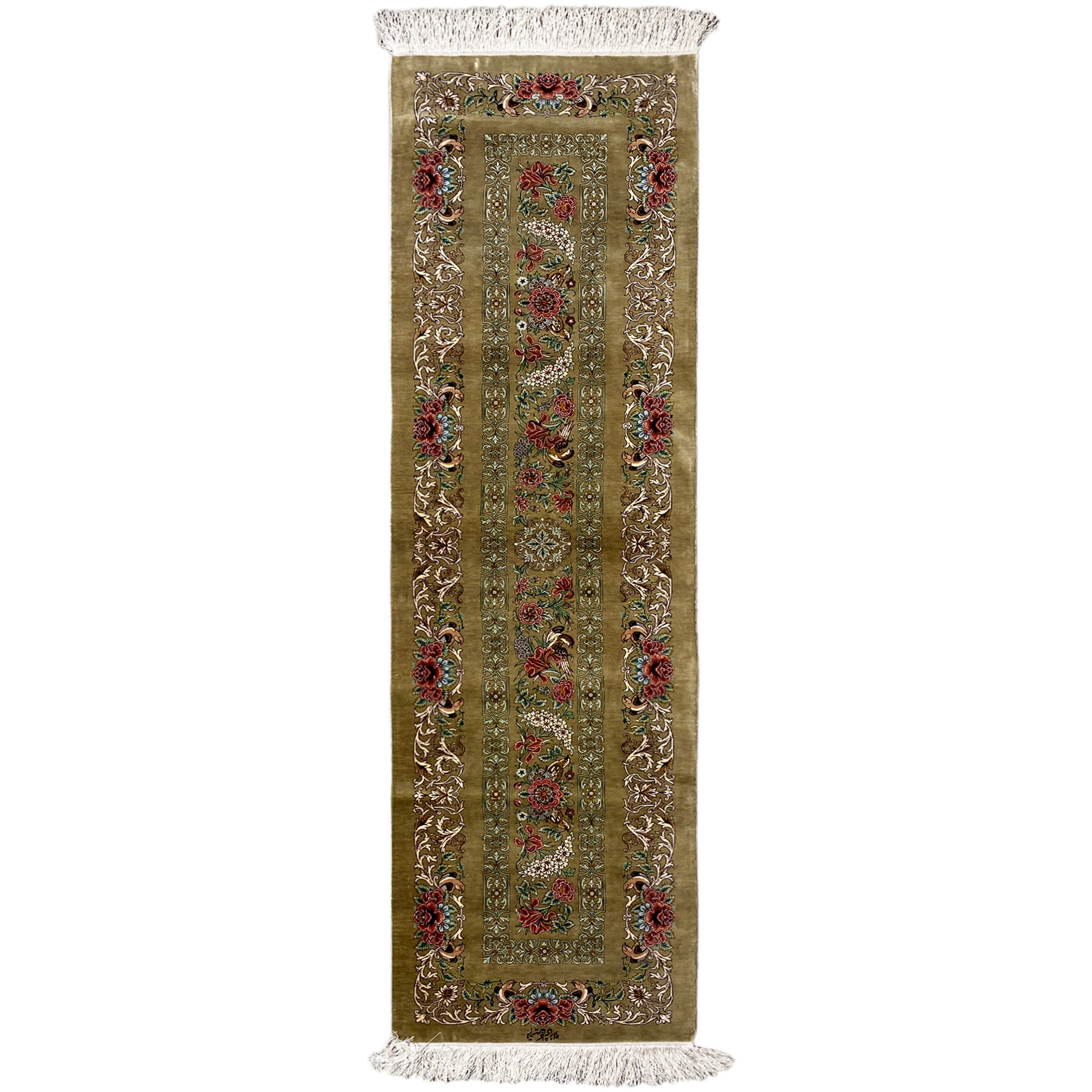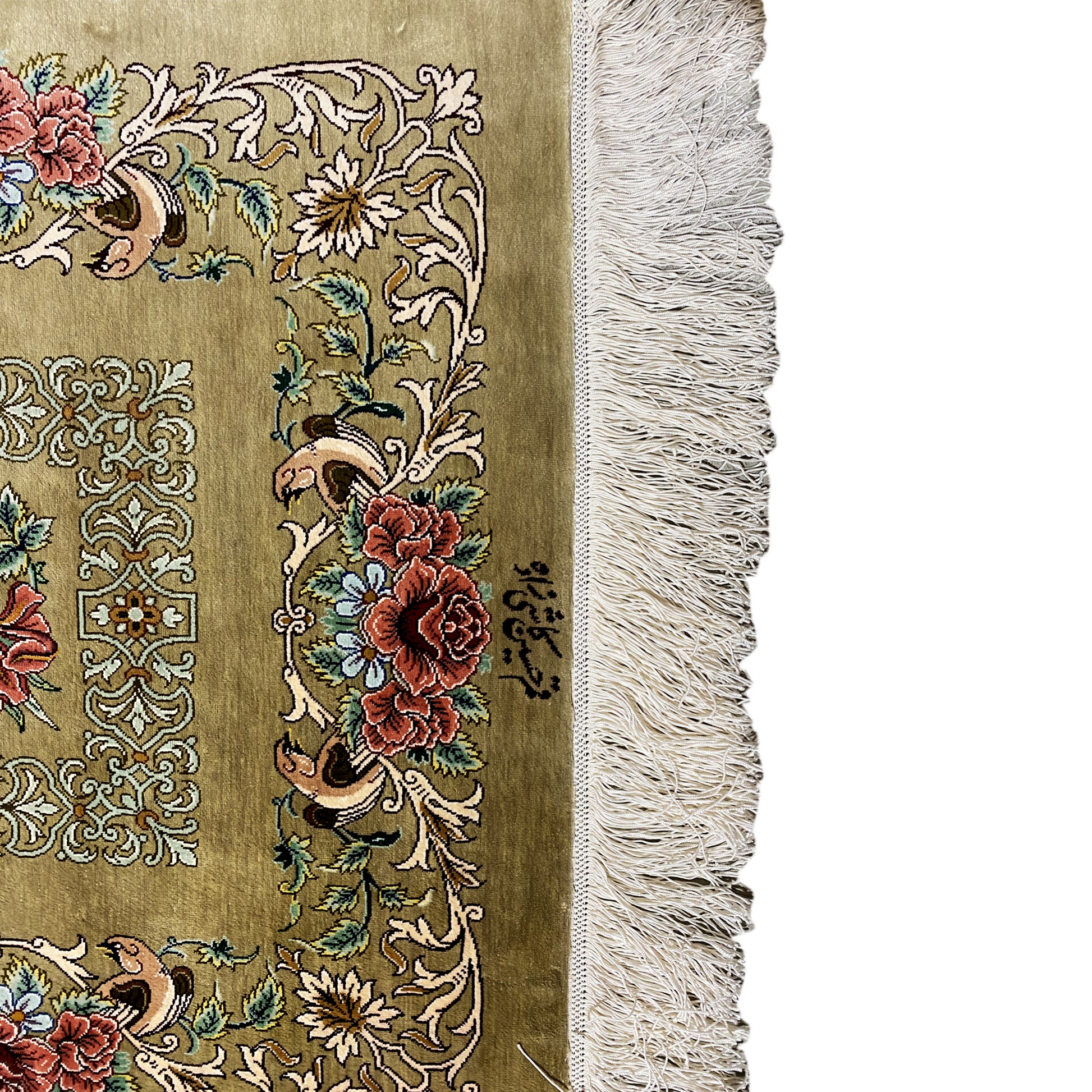 各絨毯には固有の識別番号が割り当てられており、証明書にも反映されています。この番号は絨毯の由来を追跡し、その真贋を確認するために使用されます。証明書には、絨毯を製作した職人や工房に関する情報も含まれており、絨毯の背景にある伝統と遺産を垣間見ることができます。