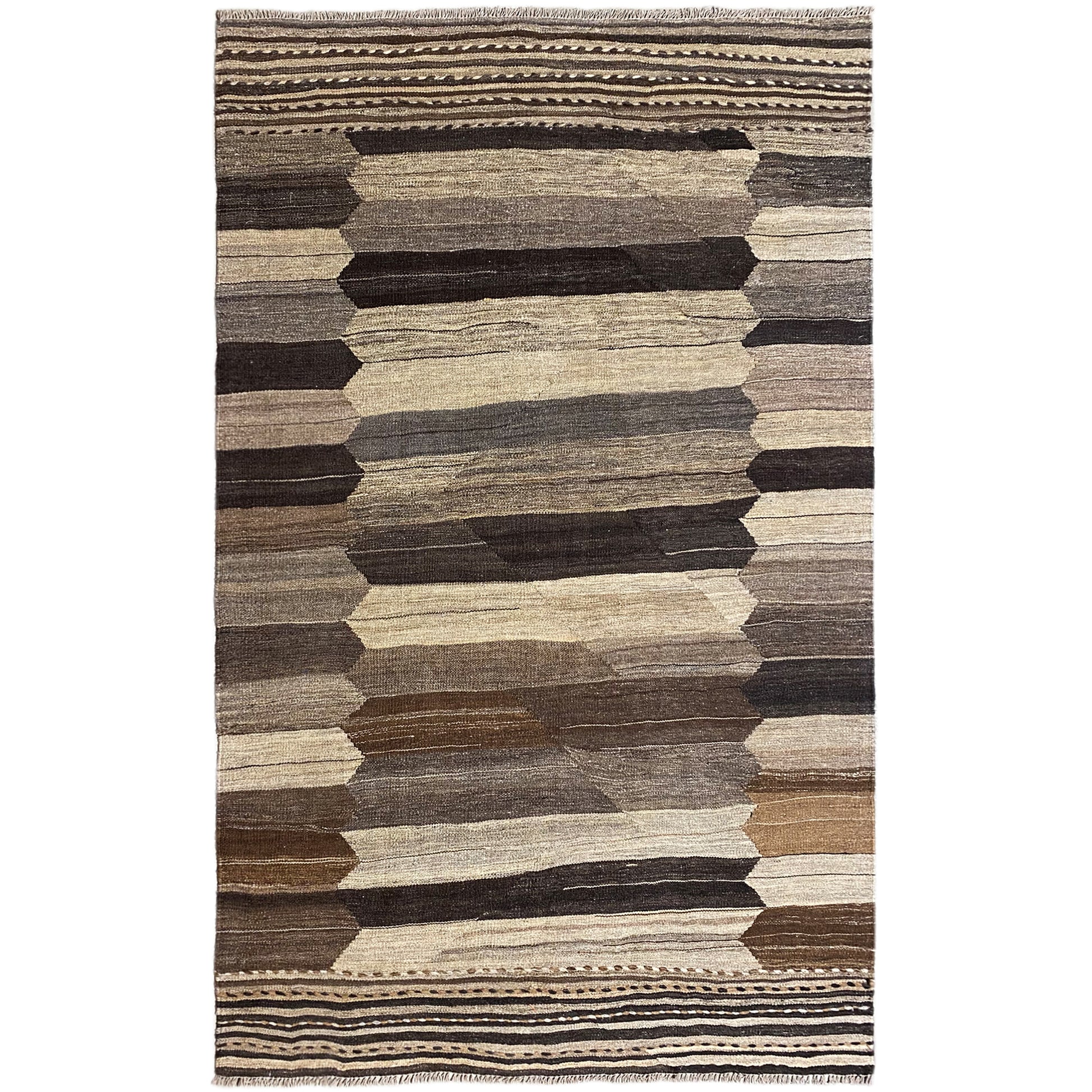 この魅力的な手織りのケリム・カシュカイは、手紡ぎの羊毛で作られており、暖かみのあるブラウンとグレーのストライプ模様が特徴です。サイズは219x136 cmで、この丈夫な平織りのラグは、モダン、スカンジナビア、トライバルなどさまざまなインテリアスタイルにスタイリッシュにマッチします。耐久性がありお手入れも簡単なだけでなく、純粋な羊毛の自然な美しさと手触りを備えており、ご自宅に居心地の良く現代的な雰囲気をもたらすのに最適です。