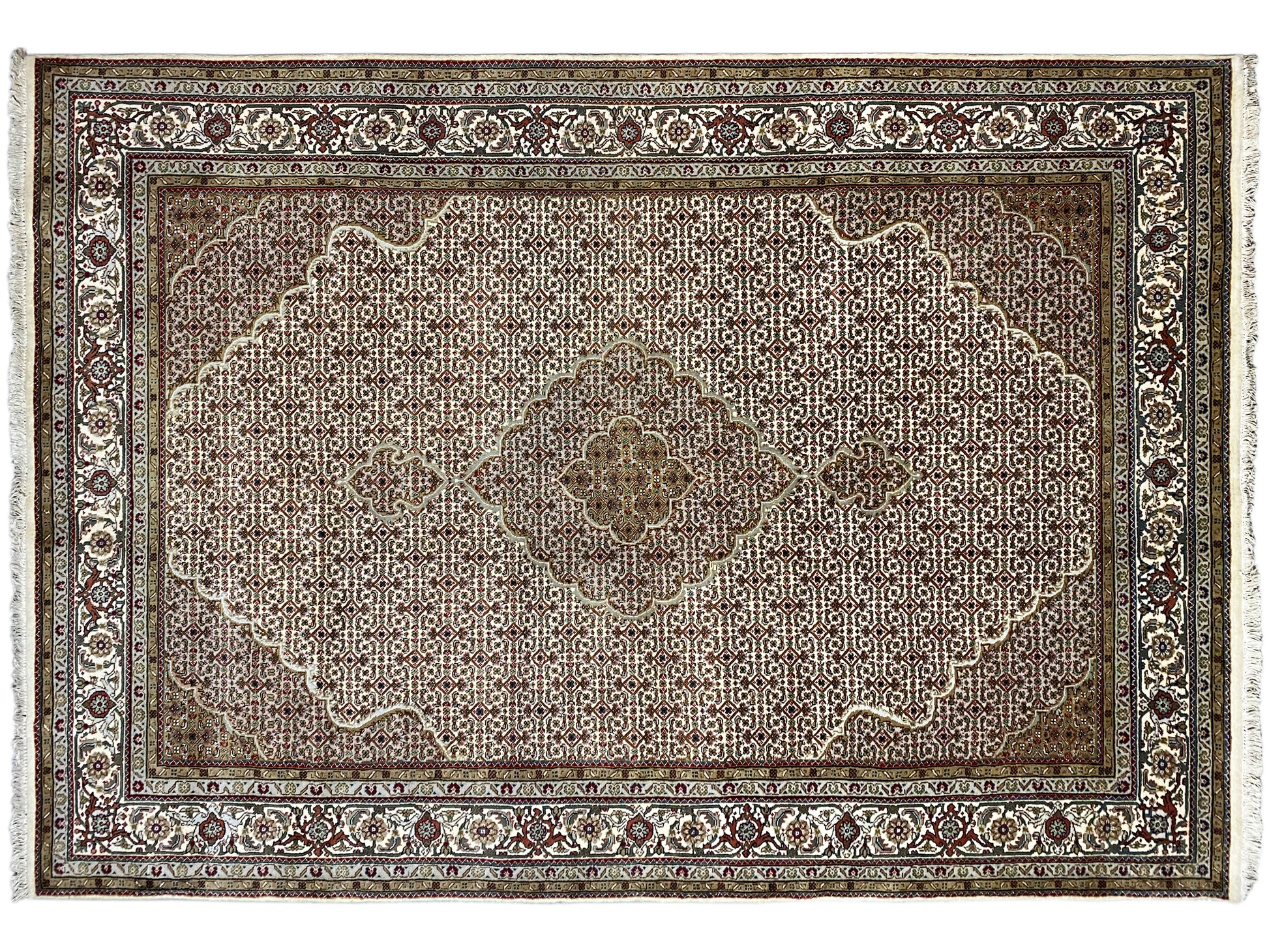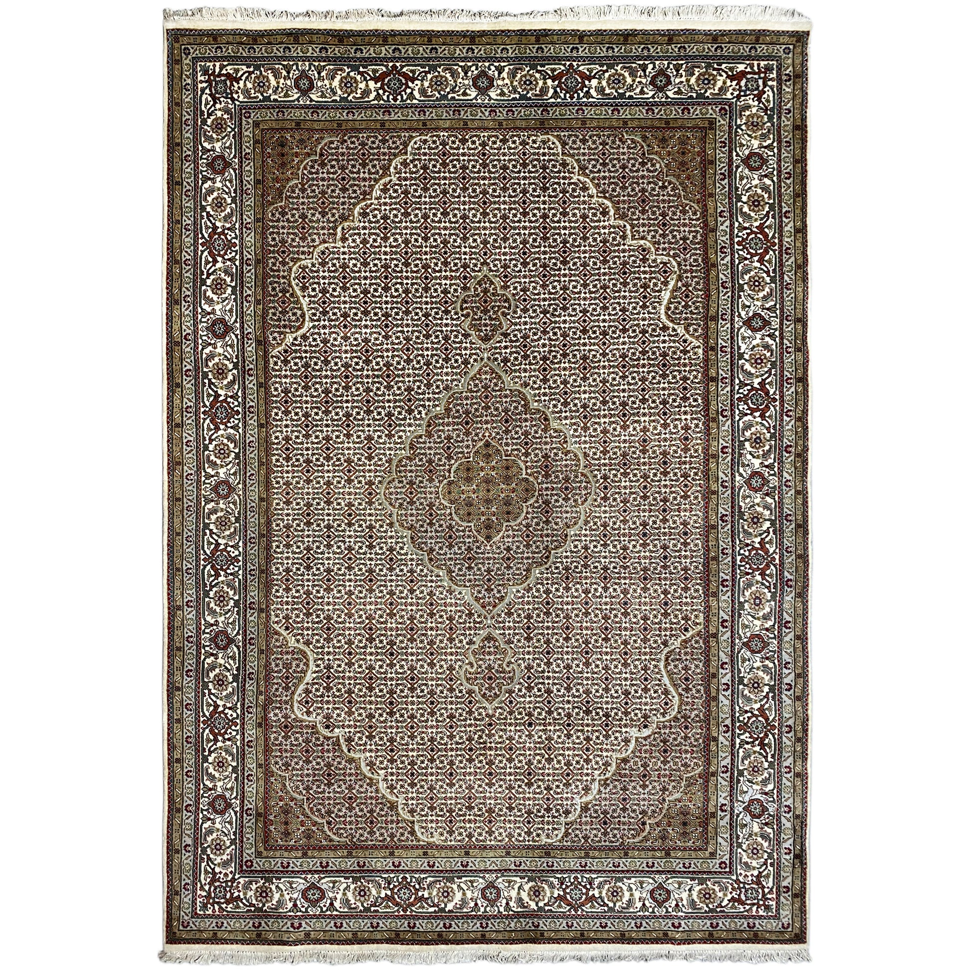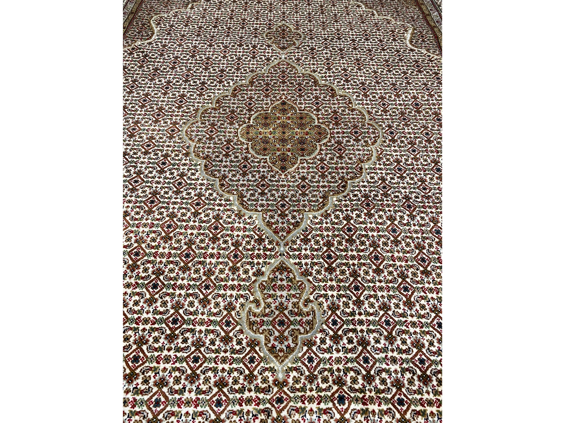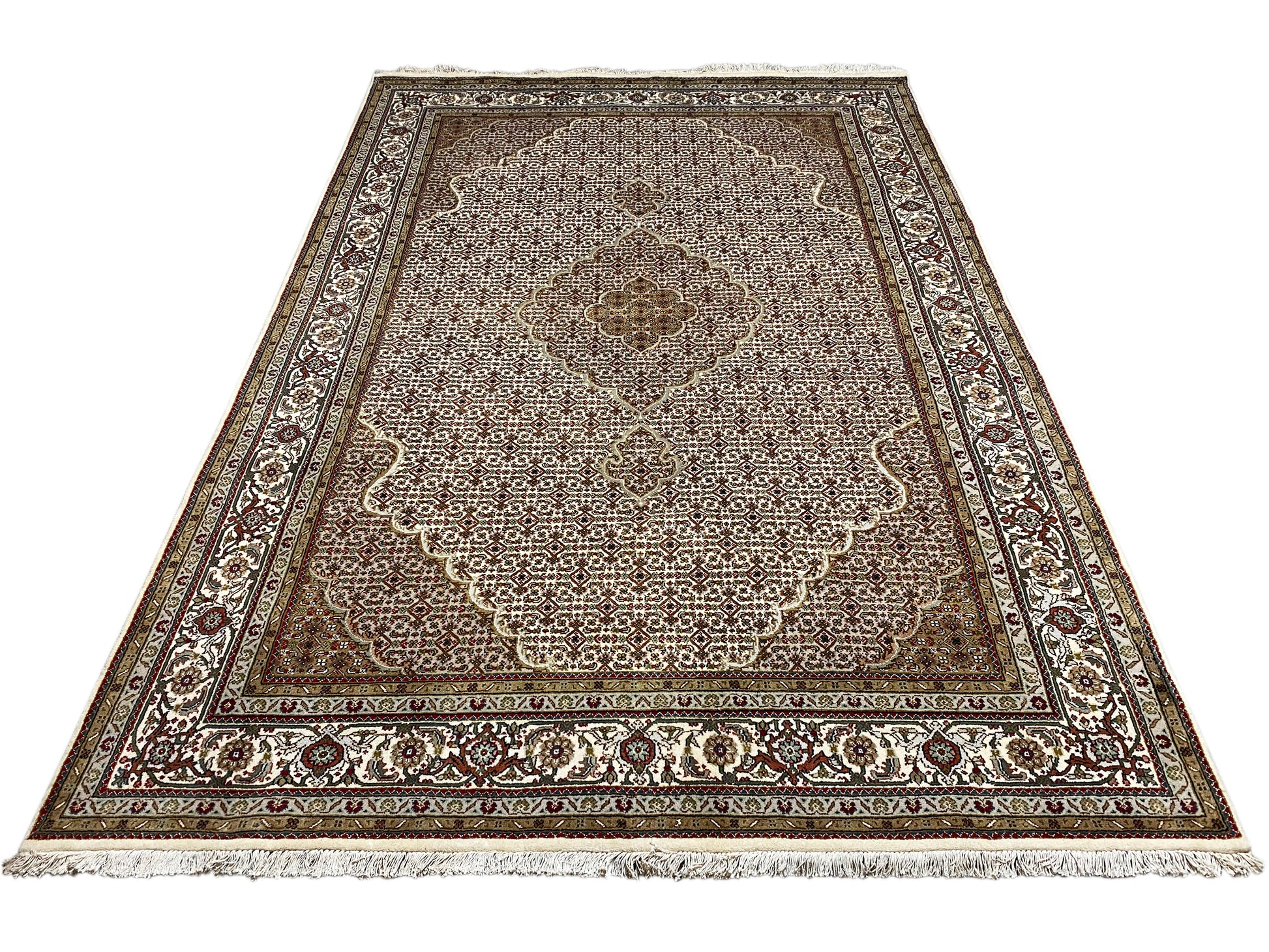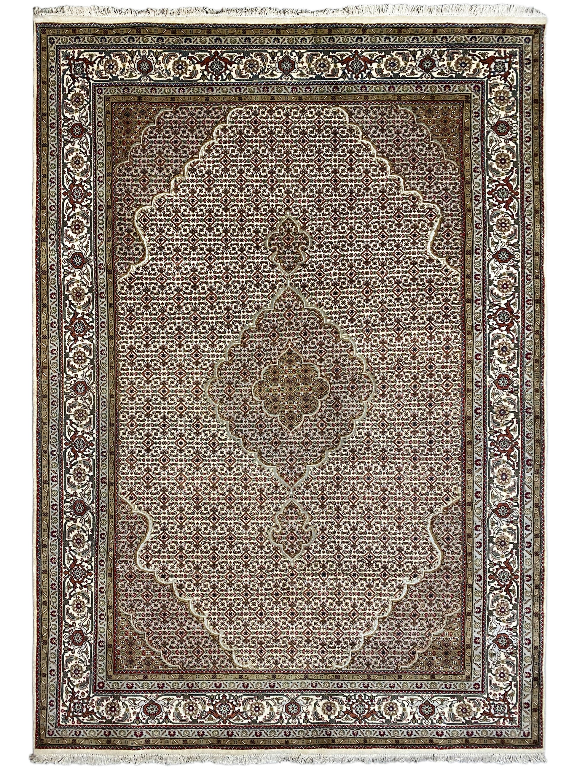 タブリーズ・マヒは元々ペルシャから来ていますが、現在では同じ品質基準でインドでも手結びされています。私たちのマヒは高品質で上品なカーペットで、細かい羊毛から結ばれています。カーペットは鮮やかで明瞭かつ深みのある色合いを持ち、優れた仕上げにより非常に耐久性があります。