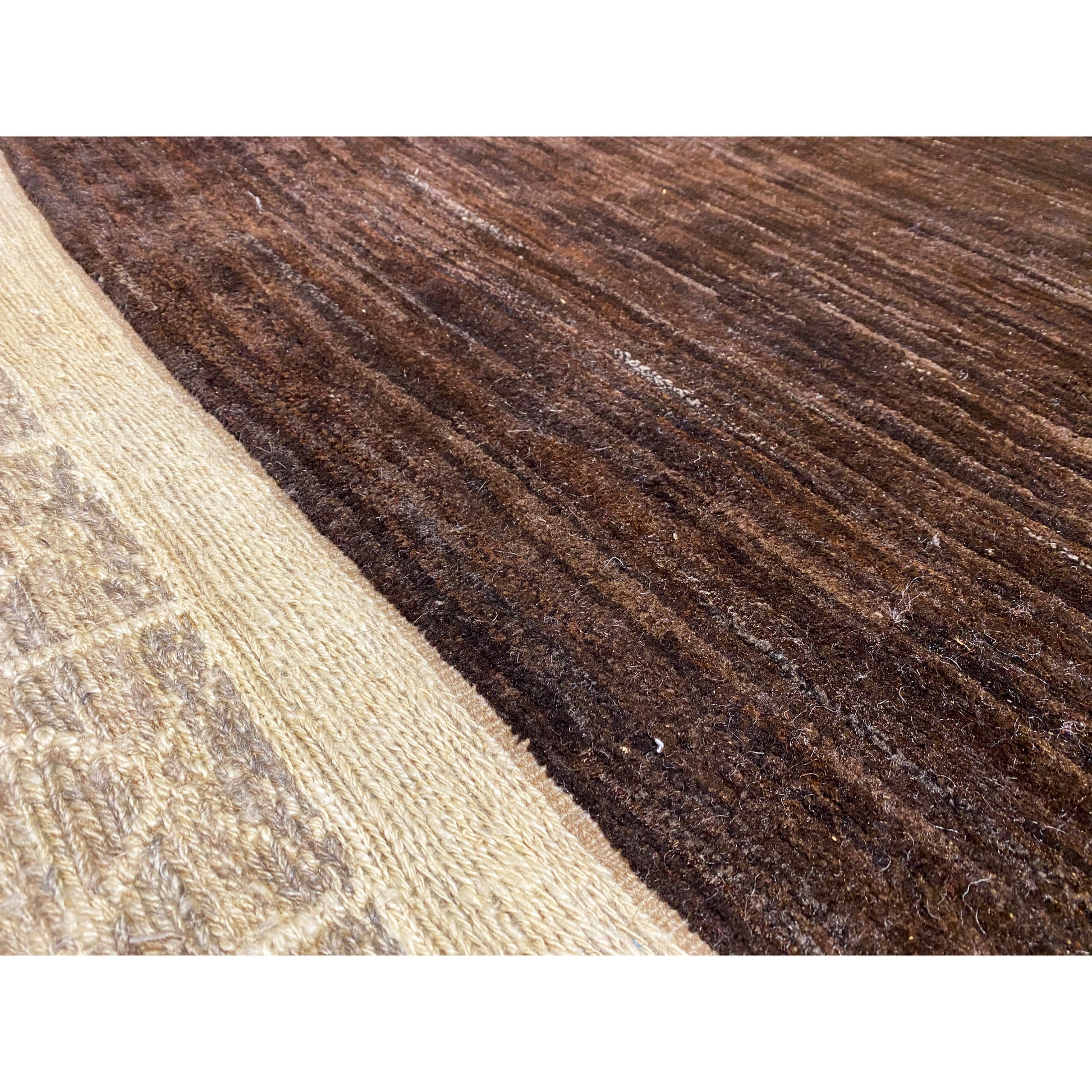 シンプルなエレガンスと伝統的な工芸技術が融合:この手作りのニンバフトカーペットは、ミニマリストデザインとシルジャンの何世紀にもわたる織物技術を結びつけています。平織りと結び目織りの組み合わせが、繊細な手触りの独特な質感を生み出します。