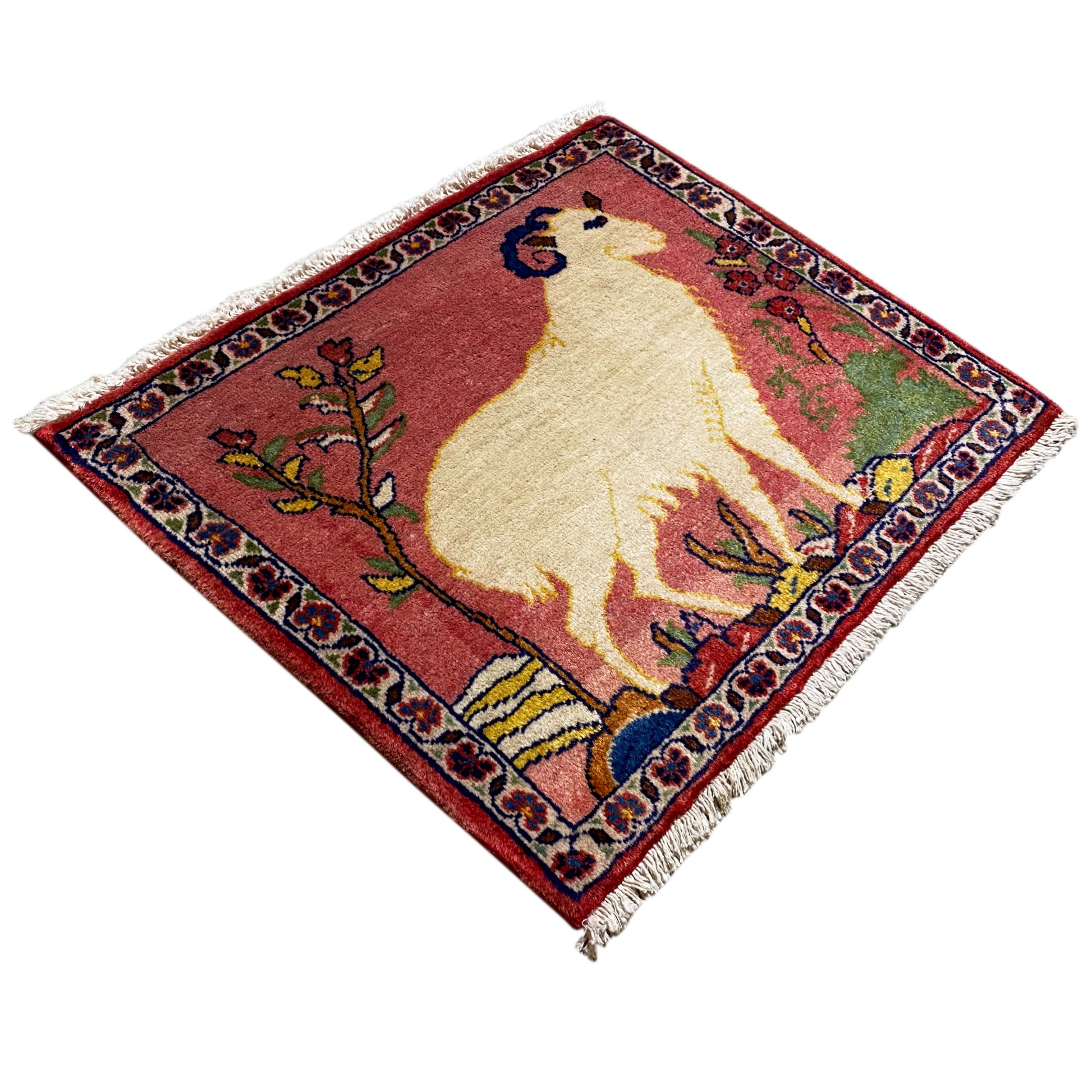 この精巧な手織りのポシュティ絨毯は、南イランの「トルク」部族グループの遊牧織物芸術の色鮮やかな証であり、特徴的な「トルキー」絨毯で知られています。54x48 cmのサイズを持つこのウールと綿の作品は、温かみのある赤い地色に、多彩で鮮やかな色調の様式化された星や幾何学模様の生き生きとした全体模様が映えます。アクセントラグとして完璧で、小さな部屋や壁面に本物の伝統と躍動的なエレガンスの雰囲気を添えます。